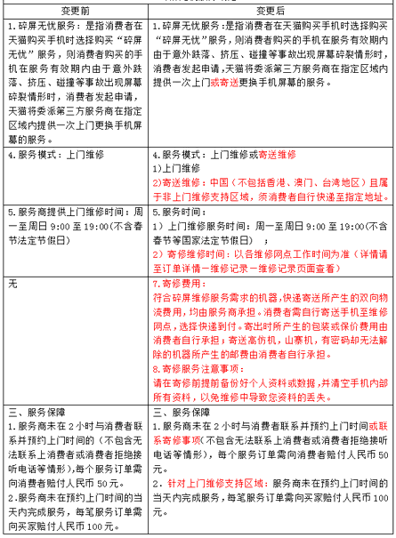 天貓規(guī)則:《碎屏無憂服務(wù)規(guī)范》變更公示通知