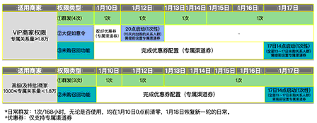 這一波專屬福利來的兇猛,足夠每天笑醒啦~ 1.天貓年貨合家歡期間【1月10日-1月17日】,專屬客服給予商家3項特權(quán) ①【群發(fā)】10~17日,給予3~4次批量群發(fā)到專屬關(guān)系客戶的機會, ②【大促如意令】12日20點,1次群發(fā)消息到15天內(nèi)已加購未購買的關(guān)系用戶,需11日前配好優(yōu)惠券! ③【未購人群召回】17日14點,1次群發(fā)消息到13日~17日期間所有未購買的關(guān)系用...