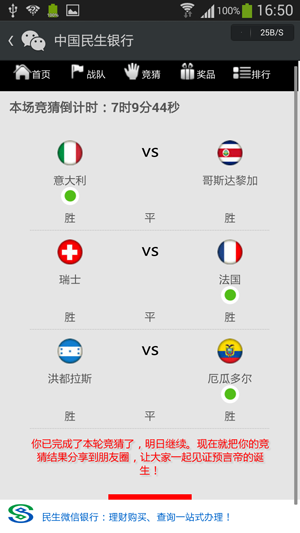 世界杯如火如荼,各種意外讓很多球迷除了瘋狂還是瘋狂,在世界杯這段日子里東哥不是個(gè)好球迷,甚至沒能堅(jiān)持看過球,不過一些大比賽的結(jié)果還是要知道的,知道了齙牙蘇咬人丶看見了梅西的絕殺,這些信息我是在朋友圈看那些真球迷的刷屏得知的,這個(gè)世界杯,偽的可以! 世界杯期間在朋友圈里同樣刷屏的還有那些做營銷的各種活動(dòng),其中東哥參與了一個(gè)小游戲,這個(gè)游戲是中國民生銀行和滿座網(wǎng)推出的世界杯活...
