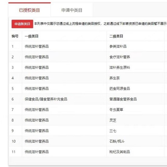已開(kāi)通類(lèi)目