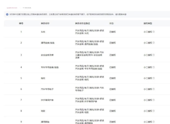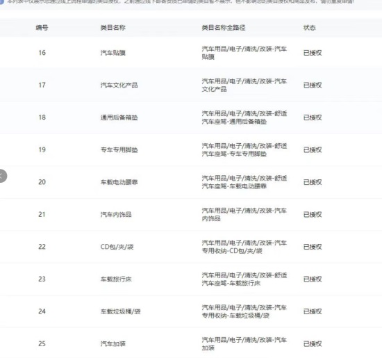 已開通類目